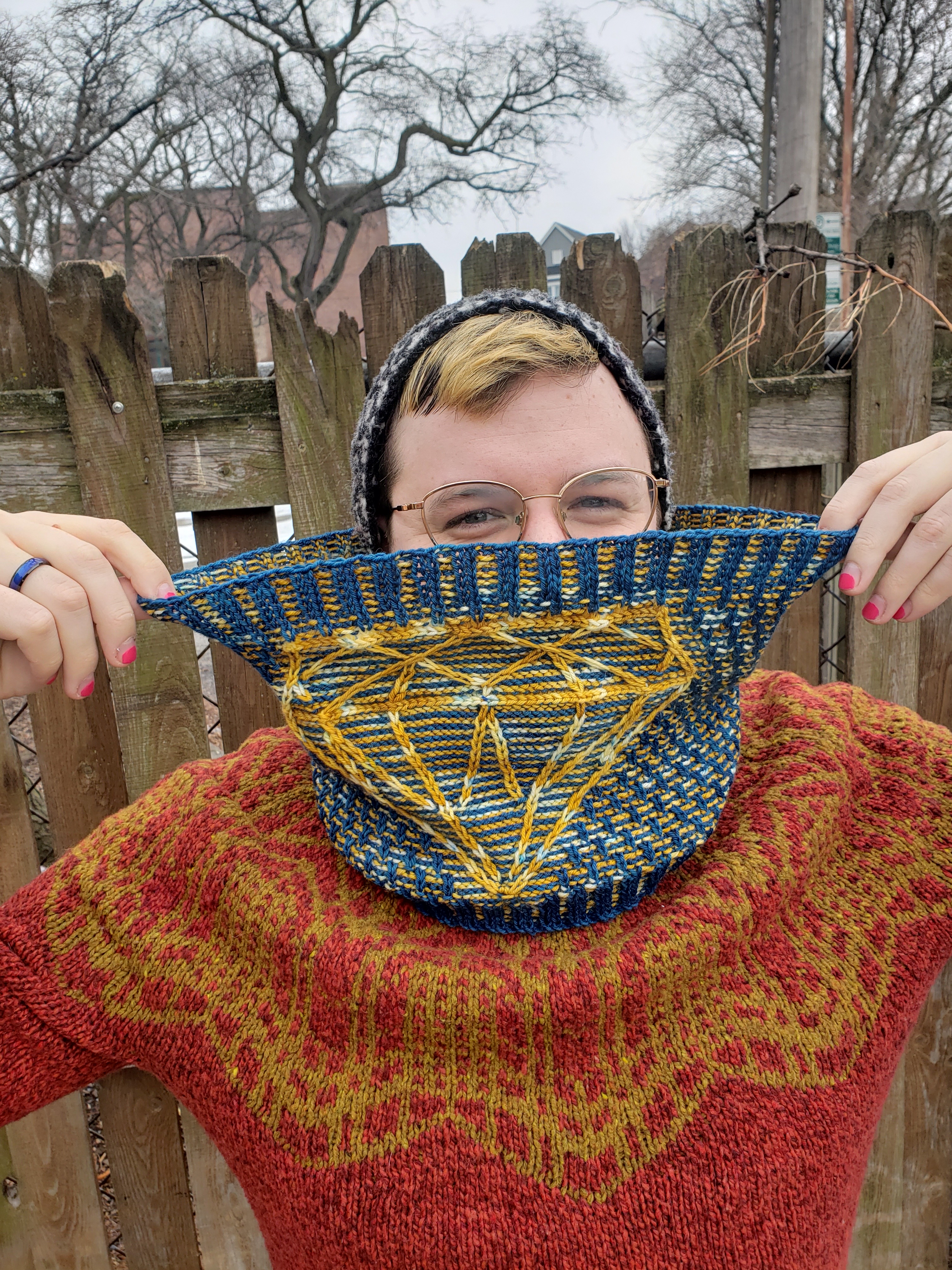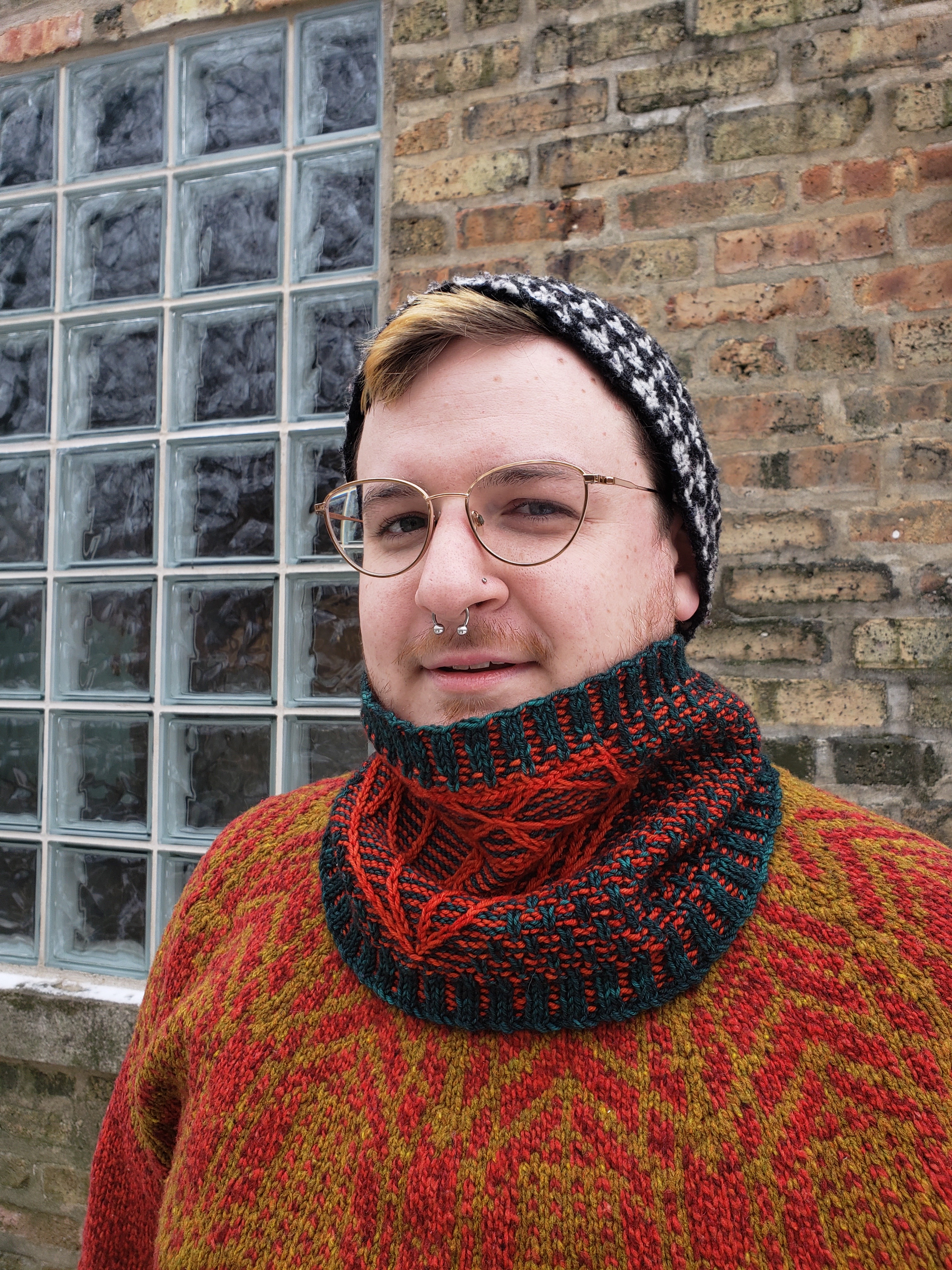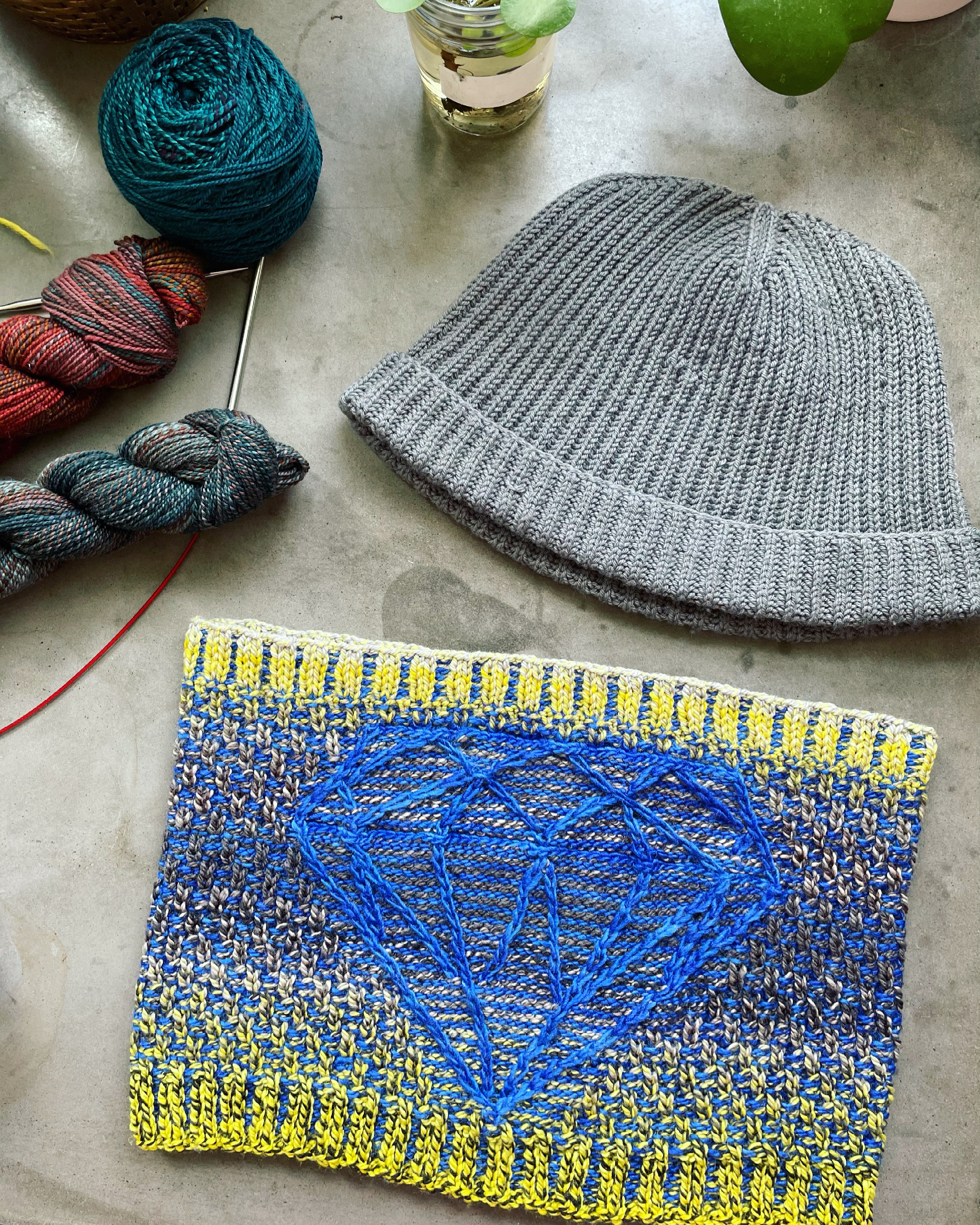 In Collaboration with Knit 1 Chicago and inspired by the flit- tering, flashy colored hummingbirds that love to swarm my grandmother’s porch, the Ruby-throated cowl will bring the warmth of summer to your neck all winter long. A charted slip stitch and cable-knit design, you’ll hold only one color for each row alternating which stitch is prominent in the main pattern while opposite the gem design. This is an engaging knit, the best part is, with 2 skeins of Knit 1 DK, you’ll be able to make 2 in the reverse colors!